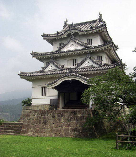 Uwajima CastleUwajima Castle is one of the 12 original castles in Japan that still has its three storied keep (donjon) intact. The castle is a “hill top castle” (hirayama-jiro) with a splendid view over the city of Uwajima which spreads out around the castle. Although the castle is small it is more than worth a visit.