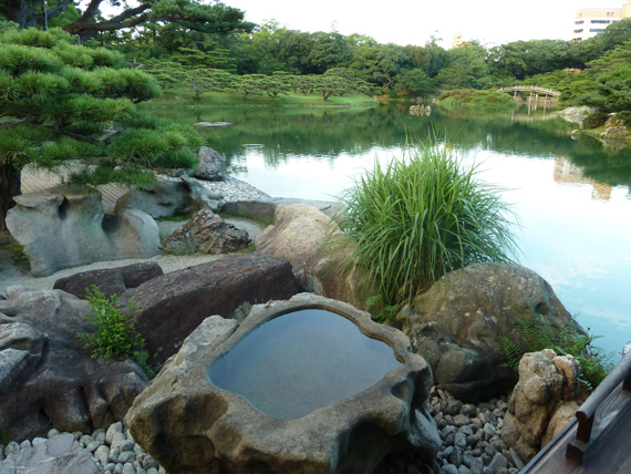 RITSURIN KOEN; "One step, one scenery"The slogan “One step, One Scenery” describes in a few words Ritsurin Koen (Garden). In 1953 Ritsurin Koen in Takamatsu was designated a National Special Place of Scenic Beauty (Nihon no Tokubetsu Meishô). A garden that surprises in many ways. With its six ponds, thirteen mounds, hills and beautiful pavilions strategically placed to use Mt Shiun as a background this garden constantly offers new sceneries. Read more below... The construction of Riutsin began in 1625 by Ikoma Takatoshi (1611-1659, Tenure: 1621-1640) lord of Sankui Province (todays Kagawa Prefecture). They started to build a garden around the south pond. The work was completed in 1745 by the by the Fifth Lord Matsudaira Yoritaka (Tenure; 1739-1771after more than 100 years of improvements and extensions made by the successive lords. Ritsurin Garden is a “National Treasure of Japan” since 1953. In 2009 the garden was given three stars as the highest-rated, worth-visiting garden for sightseeing in the Michelin Green Guide Japan. This garden ranks amply on TOP of JAPAN as one of the best gardens in Japan, worth a visit. Travelling by train to Takamatsu takes only one hour from Okayama. Its area is 750.000 square metres (75 hectares/(185 acres). From Takamatsu Station go to JR Ritsurinkoen Station (8 minutes ride) and you have another 8 minutes’ walk to the park. |